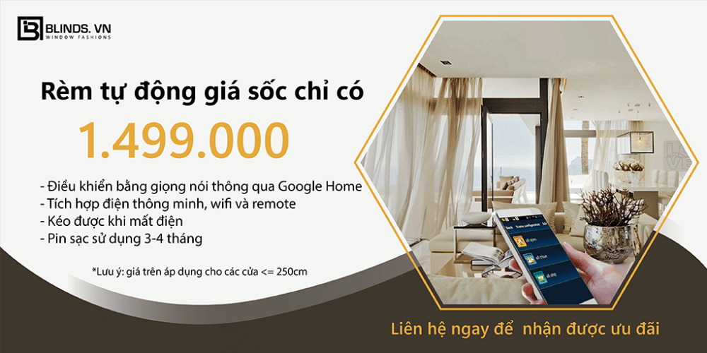 Khuyến mãi rèm vải tự động điều khiển bằng điện thoại Videcor giá chỉ 1.499.000/ bộ.