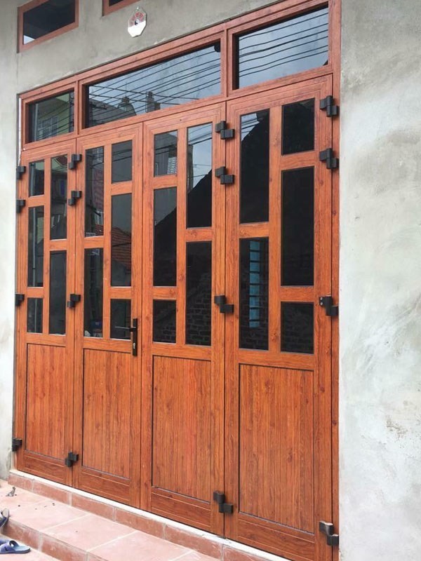 Cửa nhôm vân gỗ lùa xếp 6 cánh