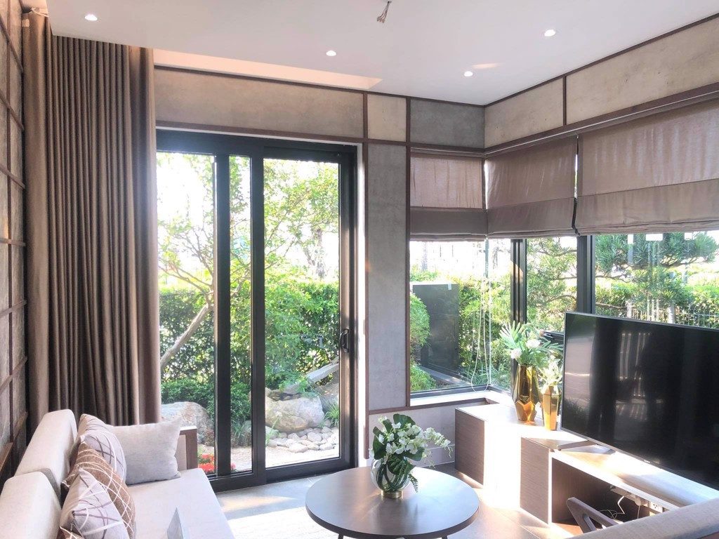 Rèm chống nắng cho gia đình ngay tại vị trí là phòng khách thì không nên bỏ qua rèm vải mở ngang và rèm roman cho cửa sổ này.