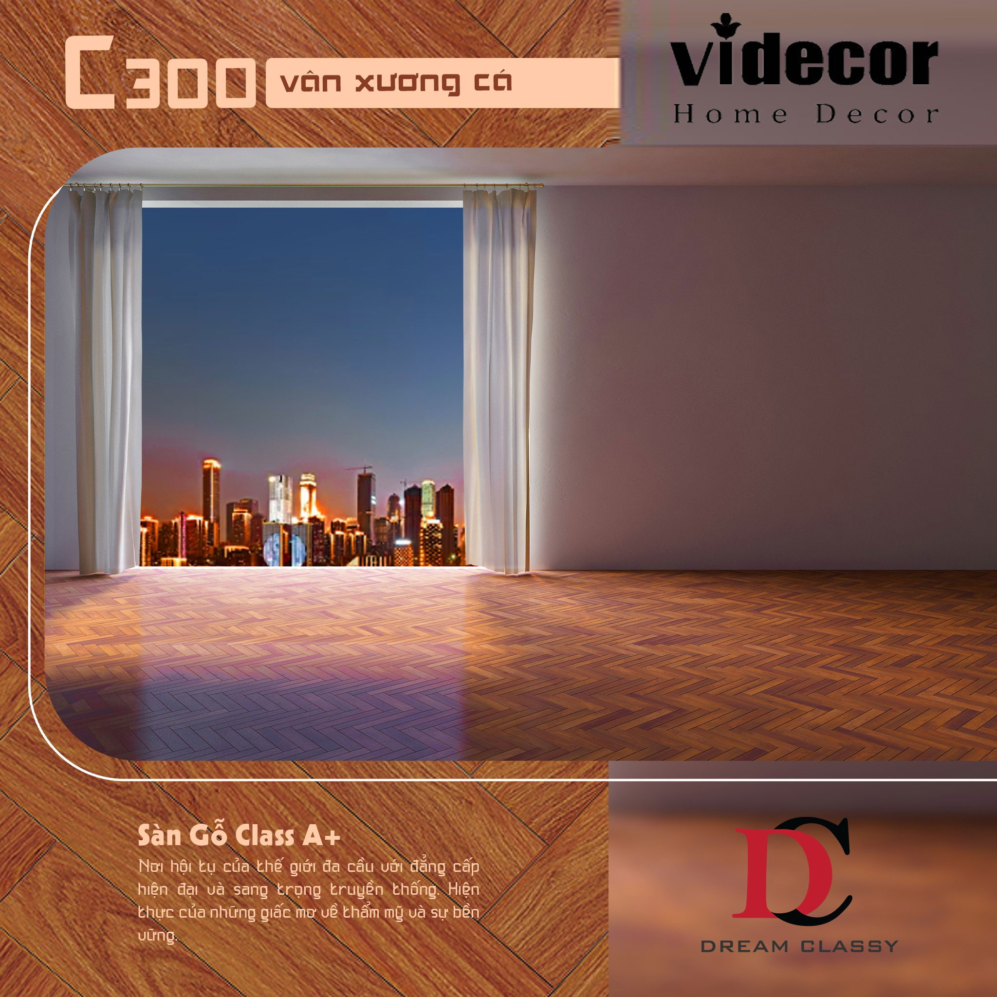 ♦ Sàn gỗ Dream Classy C300 - 8mm, dòng đẳng cấp hạng A để cung cấp và lắp đặt các sản phẩm sàn chất lượng sinh thái cho các chủ sở hữu nhà và chủ sở hữu biệt thự. Để gia chủ sẽ tận hưởng tiêu chuẩn chất lượng hạng A tại Việt Nam, sàn gỗ kinh điển truyền kỳ