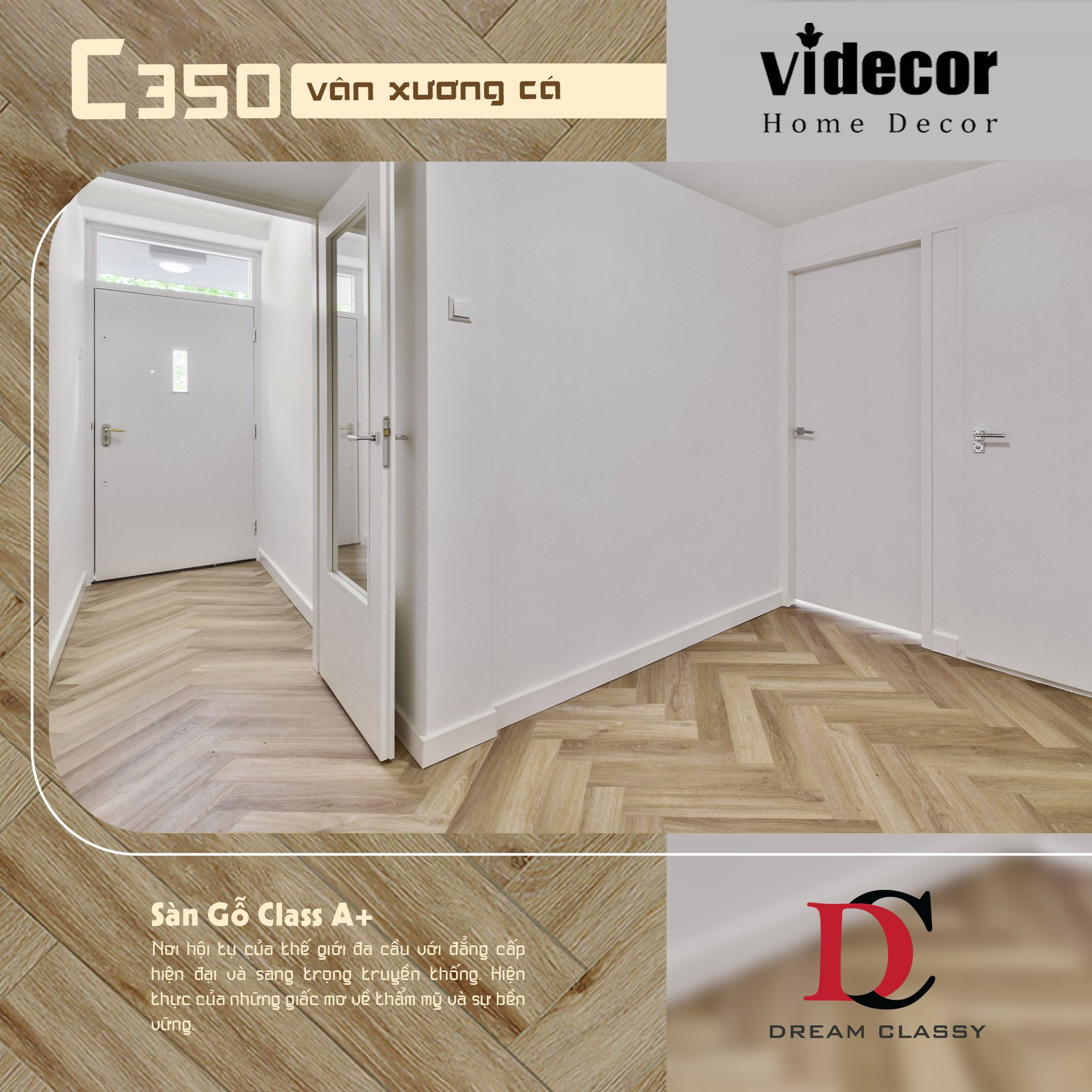 ♦ Sàn gỗ Dream Classy C350 - 8mm, dòng đẳng cấp hạng A để cung cấp và lắp đặt các sản phẩm sàn chất lượng sinh thái cho các chủ sở hữu nhà và chủ sở hữu biệt thự. Để gia chủ sẽ tận hưởng tiêu chuẩn chất lượng hạng A tại Việt Nam, sàn gỗ kinh điển truyền kỳ